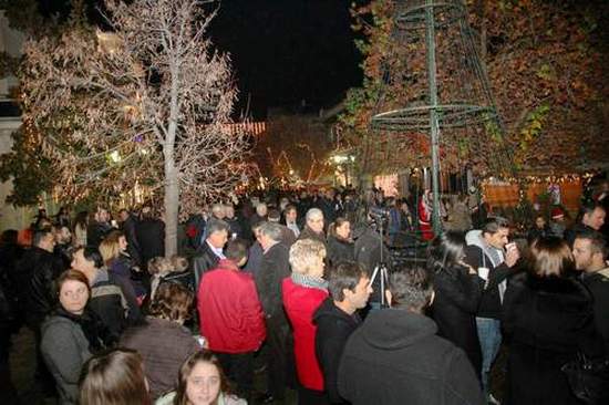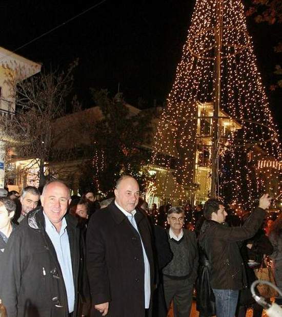 Ο Δήμαρχος, αντιδήμαρχοι και δημοτικοί σύμβουλοι περιστοιχισμένοι από δεκάδες μικρά παιδιά άναψαν το Χριστουγεννιάτικο δέντρο που είχε στηθεί στην κεντρική πλατεία παρουσία πλήθους κόσμου.