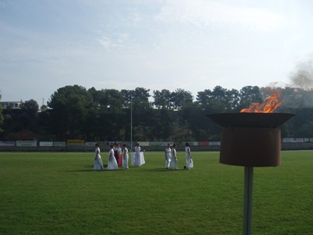 Έτσι, στο πρώτο μέρος, με την αναβίωση της Ολυμπιάδας, το κάθε σχολείο είχε ετοιμάσει ένα διαφορετικό δρώμενο, υπό τους ήχους μουσικής αγώνων: ξεκίνησε το ΕΠΑΛ με την αναπαράσταση της αφής της Ολυμπιακής Φλόγας, το Γυμνάσιο συνέχισε με ένα δρώμενο χορού των ιερειών και το Λύκειο έκλεισε με όλους τους μαθητές του να σχηματίζουν τους 5 Ολυμπιακούς κύκλους που συμβολίζουν τις 5 Ηπείρους της Γης φορώντας ο κάθε κύκλος το χρώμα μιας ηπείρου.