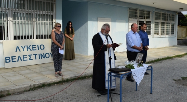 Ο Δήμαρχος Δημήτρης Νασίκας συνοδευόμενος από τον Πρόεδρο του Δ.Σ. κ. Ιωάννη Σκρίμπα και τον Πρόεδρο της Δημοτικής Κοινότητας Βελεστίνου κ. Γεώργιο Παπατόλια, παρακολούθησαν την τελετή αγιασμού στο Γυμνάσιο, Λύκειο & ΕΠΑΛ Βελεστίνου.