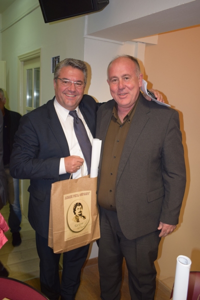Ακολούθησε συζήτηση και ανάλυση των στόχων της ΔΕΠΑΝ αλλά και των ήδη δράσεων της από το έτος 2015, έτος ίδρυσης της. Ο κ. Νασίκας Δημήτριος δώρισε στους φιλοξενούμενους βιβλία για τη ζωή και το έργο του Ρήγα Βελεστινλή και τη χάρτα του Ρήγα.