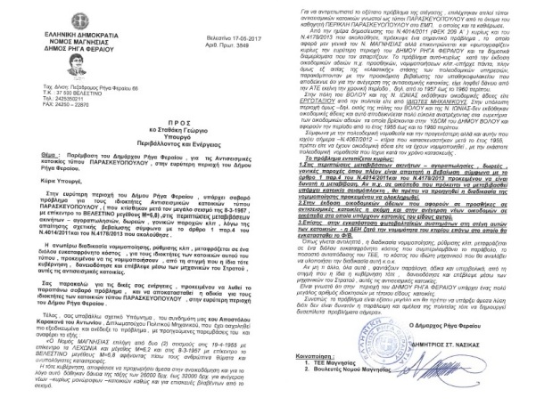 Παρέμβαση του Δημάρχου Ρήγα Φεραίου, για τις Αντισεισμικές κατοικίες τύπου Παρασκευοπούλου, στην ευρύτερη περιοχή του Δήμου Ρήγα Φεραίου 18 May 2017 by internet_office 0 Για να δείτε το pdf πατήστε εδώ About internet_office
