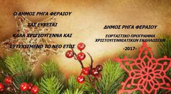 Εορταστικό πρόγραμμα Χριστουγεννιάτικων Χριστουγέννων Δήμου Ρήγα Φεραίου 2017 2 December 2017 by internet_office 0 More info