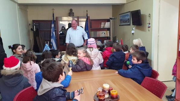 Τα πρώτα κάλαντα στο Δήμαρχο Ρήγα Φεραίου, κ. Δημήτρη Νασίκα τραγούδησαν μαθητές του 1ου Νηπιαγωγείου Βελεστίνου την Παρασκευή 15 Δεκεμβρίου το πρωί συνοδευόμενα από τις Νηπιαγωγούς και τη Διευθύντρια, κα. Μαρία Πράντζου.
