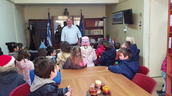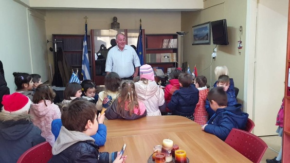 Ο κ. Νασίκας τους ευχήθηκε Καλά Χριστούγεννα και είπε στους μικρούς μαθητές ότι στο Βελεστίνο γεννήθηκε ο Ρήγας Βελεστινλής και γι’ αυτό το λόγο ο Δήμος έχει το όνομα του.