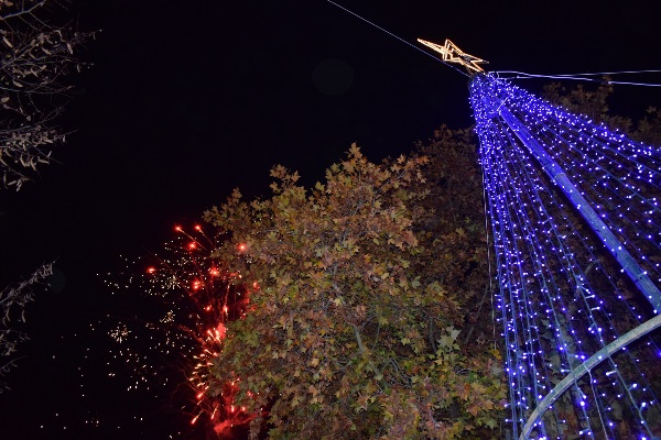 Το άναμμα του δέντρου συνόδευσαν βεγγαλικά που μαζί με φαναράκια που άναψαν μαθητές δημοτικού, γυμνασίου και λυκείου φώτισαν τον ουρανό και έστειλαν ευχές για το νέο έτος.