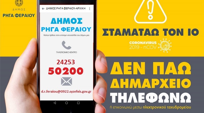 ΔΗΜΟΣ ΡΗΓΑ ΦΕΡΑΙΟΥ ΑΝΑΚΟΙΝΩΣΗ Με απόφαση του Δημάρχου Ρήγα Φεραίου κλειστά τα σχολεία για απολύμανση. Με απόφαση του Δημάρχου Ρήγα Φεραίου, Δημήτρη Νασίκα και σε συνεννόηση με τους προέδρους της