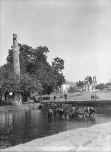 Κιρατζήδες του Βελεστίνου ποτίζουν τα ζώα τους στο Κεφαλόβρυσο τη δεκαετία του 1920. Φωτογραφία του Ελβετού αρχαιολόγου Paul Collart Copyright Fonds Collart-UNIL-ASA, (Αρχείο Γιώργου Σαββανάκη)