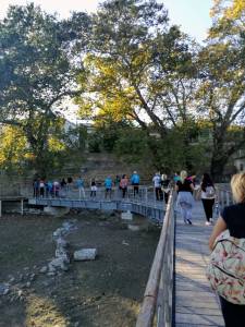 Έπειτα συνέχισαν προς τον λόφο της Παναγίας, όπου είχαν την ευκαιρία να θαυμάσουν τα επιβλητικά τείχη της κλασσικής εποχής και να μάθουν για την ιστορία και τους βασιλιάδες της αρχαίας πόλης. Περνώντας ύστερα από τη Μαγούλα Μπακάλη η επιστήμη της αρχαιολογίας συνδυάστηκε με την ιστορία.