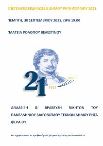 ΠΕΜΠΤΗ 30 ΣΕΠΤΕΜΒΡΙΟΥ 2021, ΩΡΑ 19:00, ΑΝΑΔΕΙΞΗ & ΒΡΑΒΕΥΣΗ ΝΙΚΗΤΩΝ ΤΟΥ ΠΑΝΕΛΛΗΝΙΟΥ ΔΙΑΓΩΝΙΣΜΟΥ ΤΕΧΝΩΝ ΔΗΜΟΥ ΡΗΓΑ ΦΕΡΑΙΟΥ 29 September 2021 by internet_office 0 About internet_office
