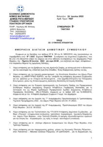 ΠΡΟΣΚΛΗΣΗ ΣΤΗΝ 8η/2022 ΔΗΜΟΣΙΑ ΤΑΚΤΙΚΗ ΣΥΝΕΔΡΙΑΣΗ ΤΟΥ ΔΗΜΟΤΙΚΟΥ ΣΥΜΒΟΥΛΙΟΥ ΤΗΝ ΠΕΜΠΤΗ 30 ΙΟΥΝΙΟΥ 2022, ΣΤΙΣ 20:00 28 June 2022 by internet_office 0 About internet_office