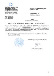 ΠΡΟΣΚΛΗΣΗ ΔΗΜΟΣΙΑΣ 1ης & 2ης ΤΑΚΤΙΚΗΣ-ΕΙΔΙΚΗΣ ΣΥΝΕΔΡΙΑΣΗΣ ΤΟΥ ΔΗΜΟΤΙΚΟΥ ΣΥΜΒΟΥΛΙΟΥ ΤΗΝ ΤΡΙΤΗ 31 ΙΑΝΟΥΑΡΙΟΥ ΣΤΙΣ 19:30 ΚΑΙ 20:00.