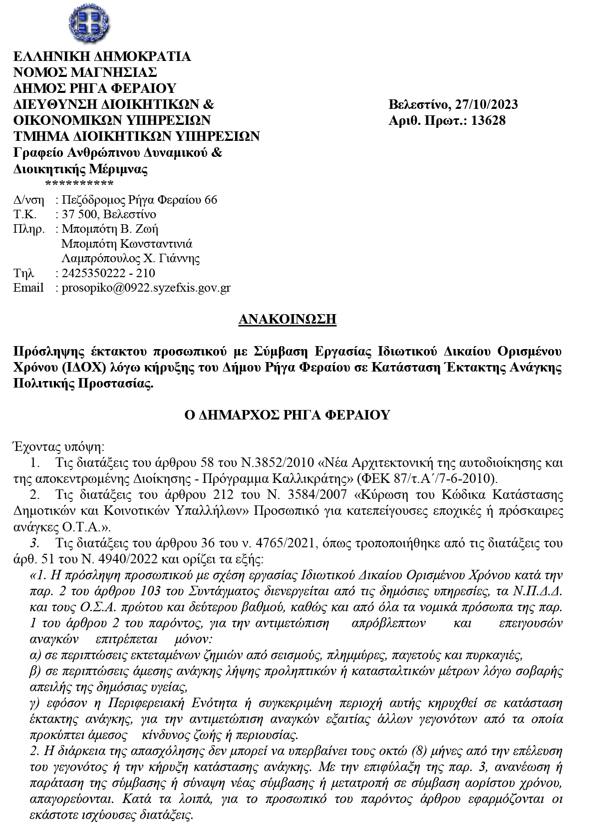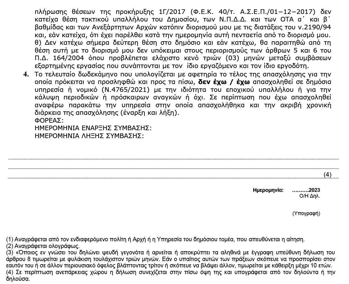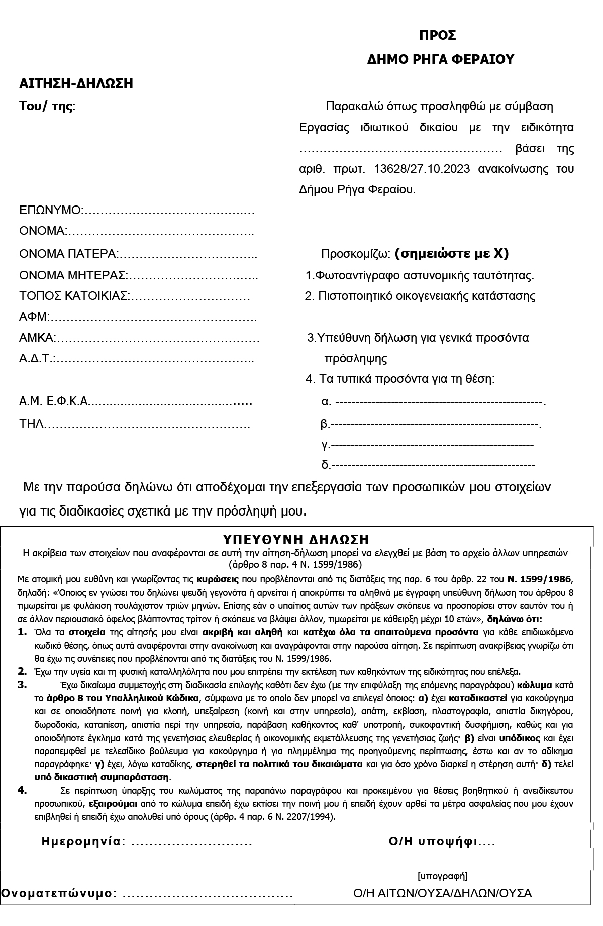 Πρόσληψης έκτακτου προσωπικού με Σύμβαση Εργασίας Ιδιωτικού Δικαίου Ορισμένου Χρόνου 27 October 2023 by User 0 Κλικ εδώ για να κατεβάσετε την αίτηση Κλικ εδώ για να κατεβάσετε την υπεύθυνη δήλωση About User