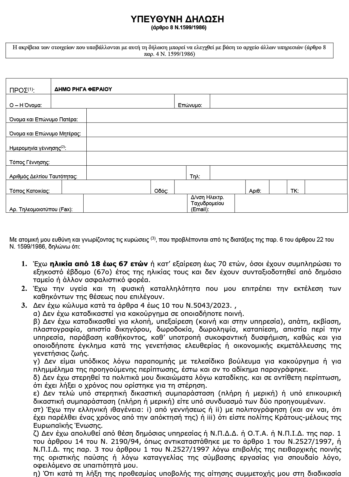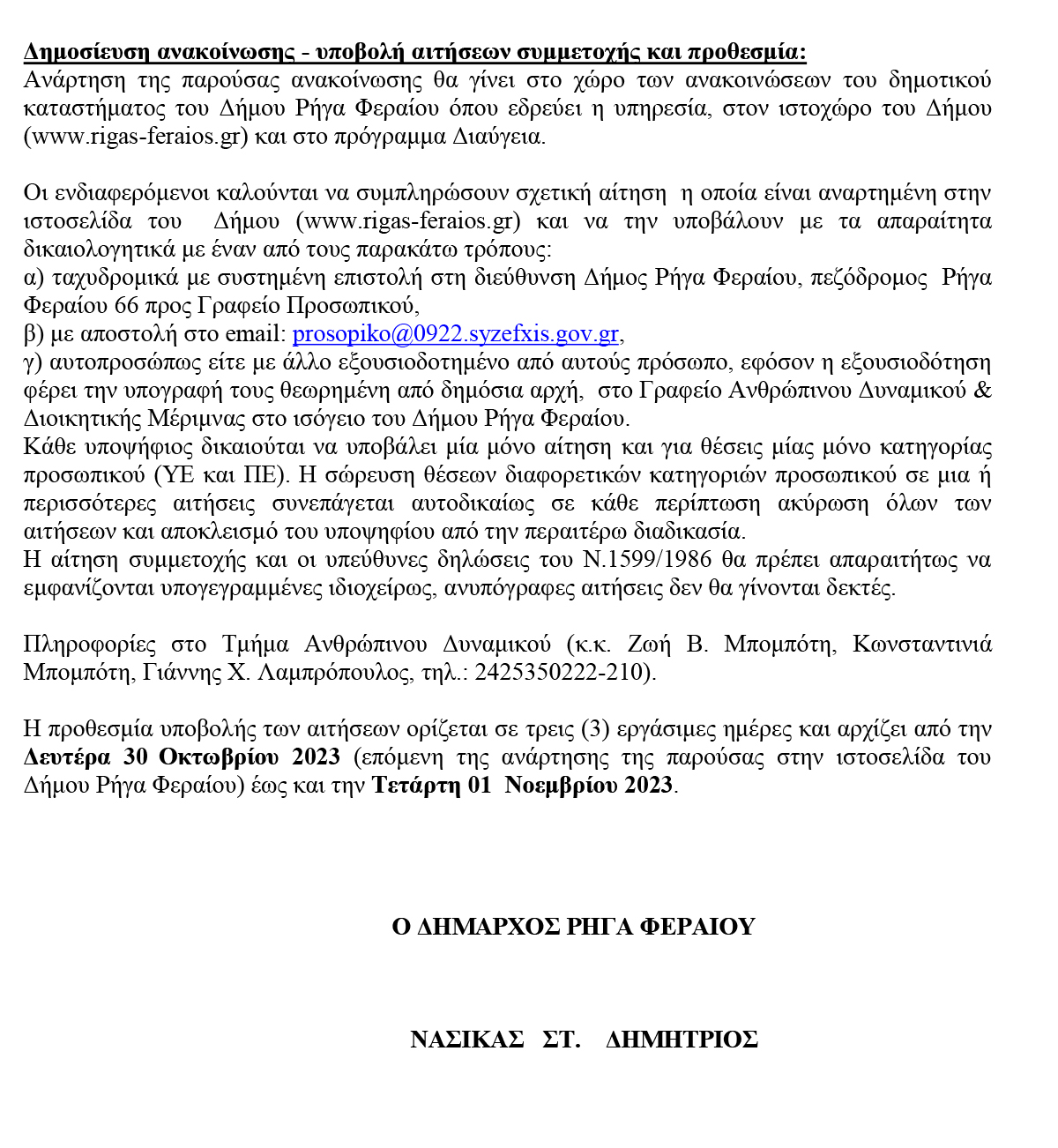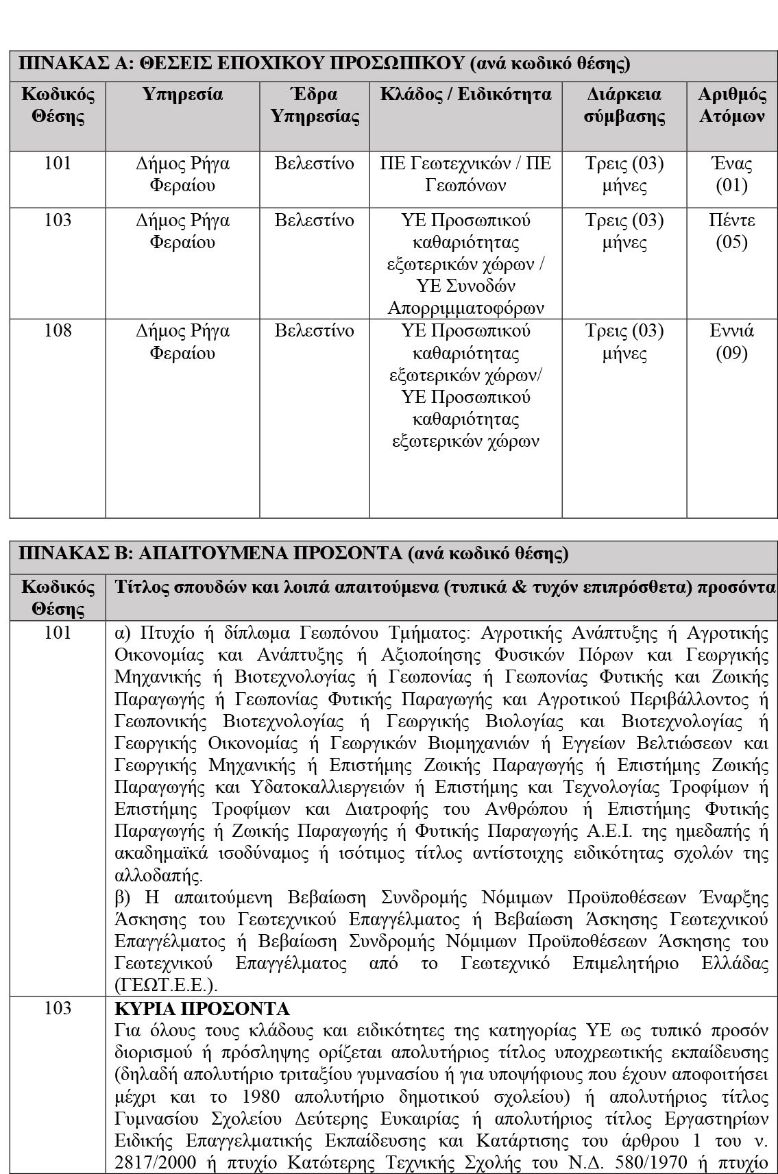 Πρόσληψης έκτακτου προσωπικού με Σύμβαση Εργασίας Ιδιωτικού Δικαίου Ορισμένου Χρόνου 27 October 2023 by User 0 Κλικ εδώ για να κατεβάσετε την αίτηση Κλικ εδώ για να κατεβάσετε την υπεύθυνη δήλωση About User