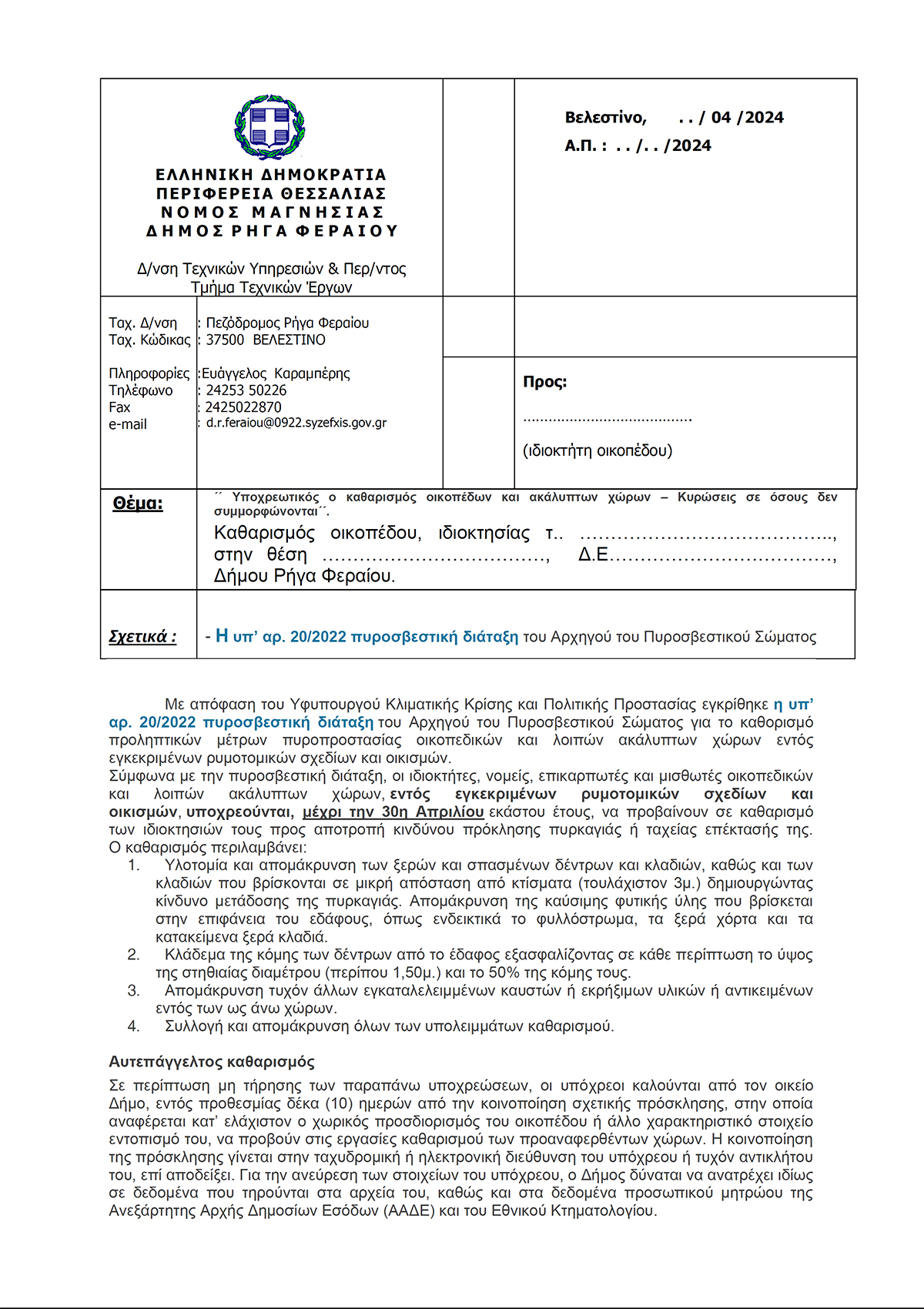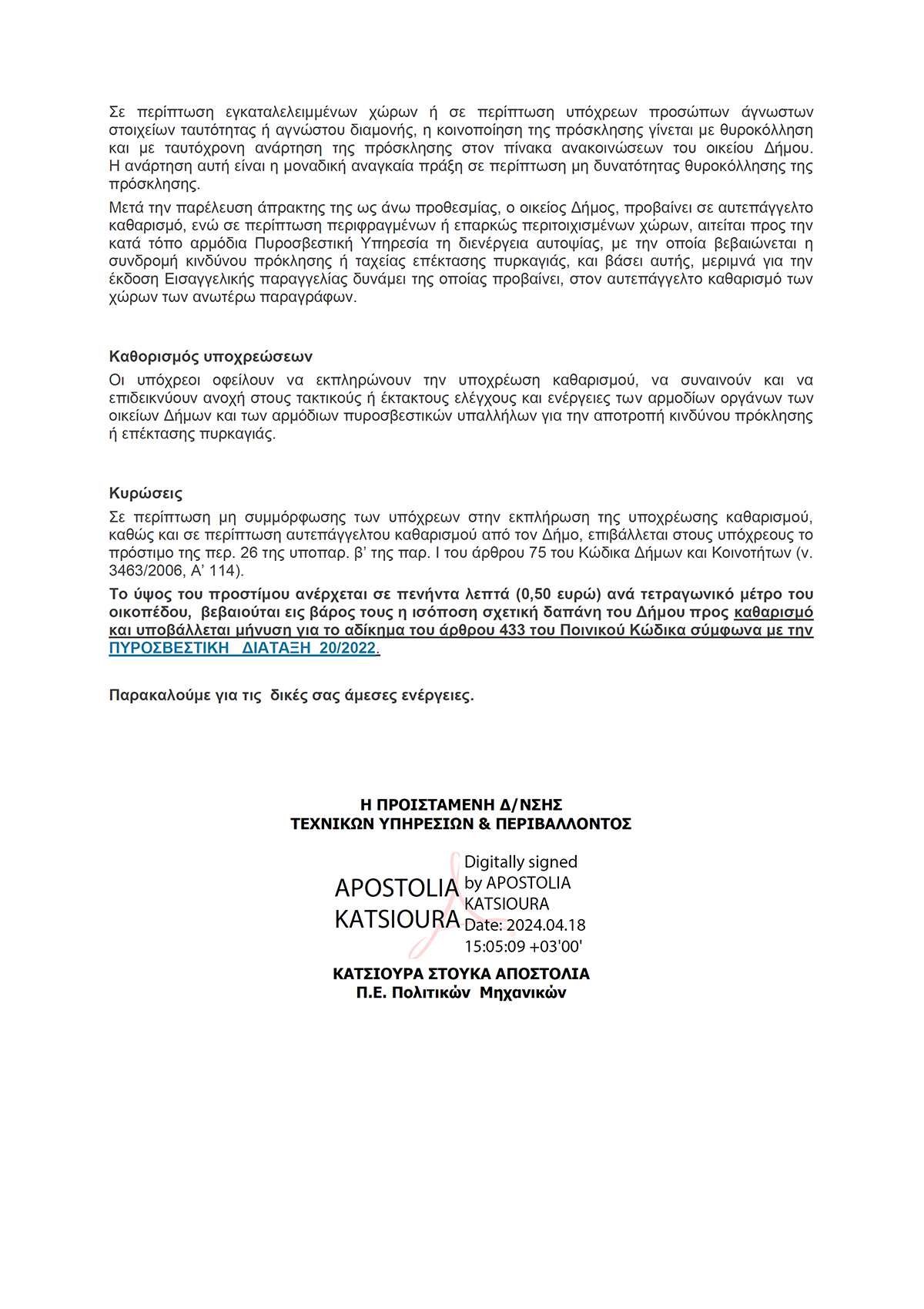 Δ.Τ. Τεχνικών Υπηρεσιών για τον καθαρισμό οικοπέδων