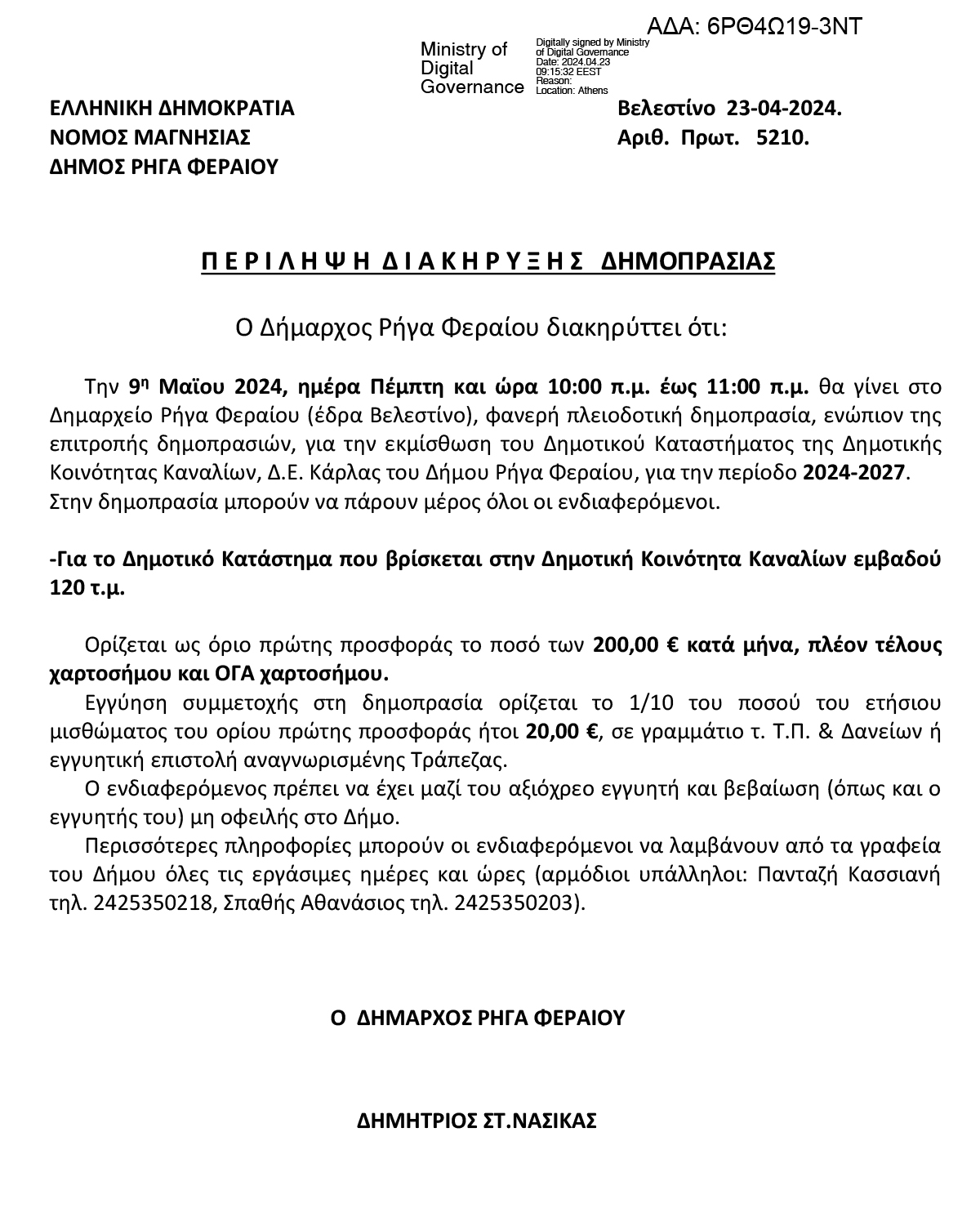 ΠΕΡΙΛΗΨΗ ΔΙΑΚΗΡΥΞΗΣ ΔΗΜΟΤΙΚΟΥ ΚΑΤΑΣΤΗΜΑΤΟΣ ΚΑΝΑΛΙΩΝ