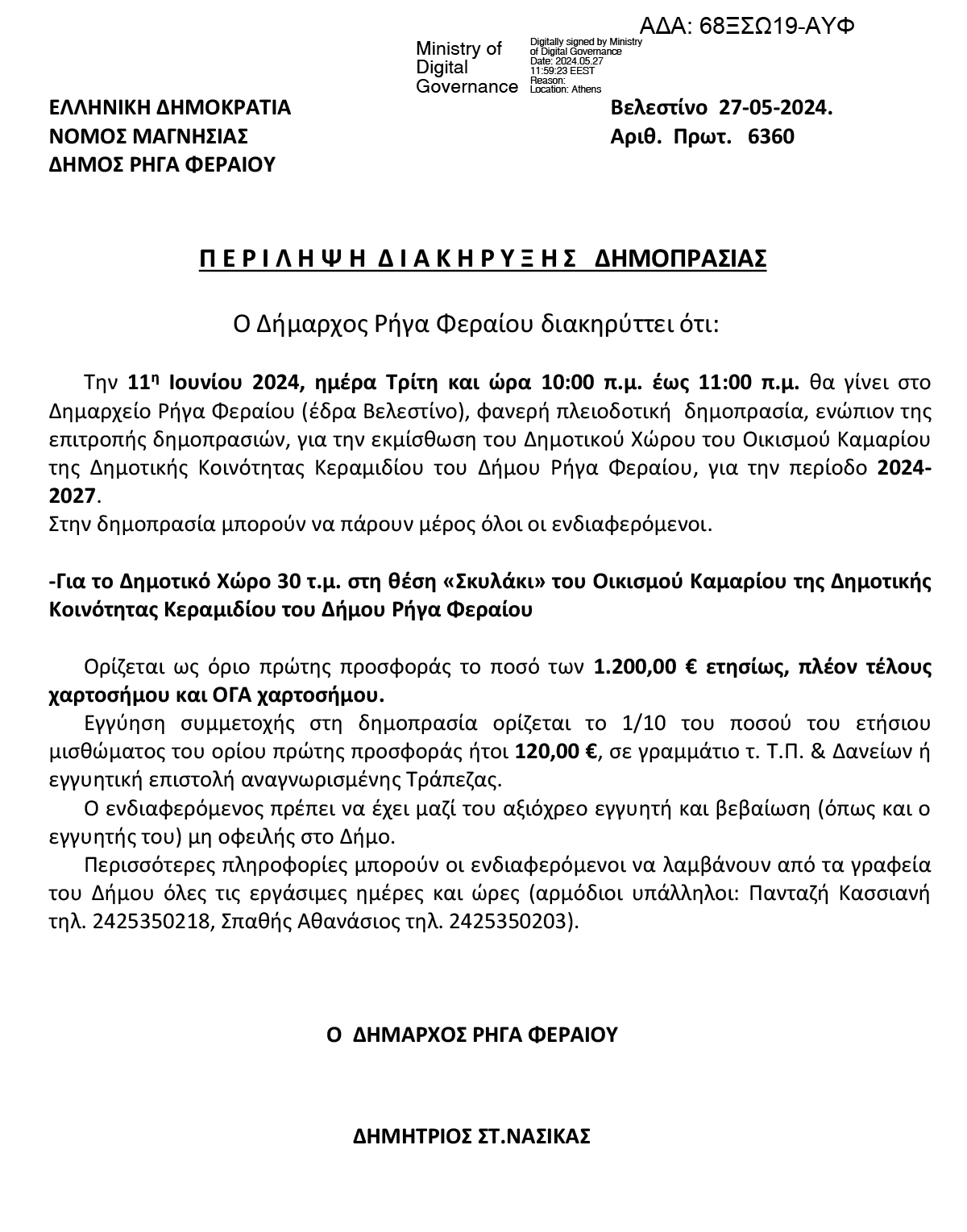 ΠΕΡΙΛΗΨΗ ΔΙΑΚΗΡΥΞΗΣ ΔΗΜΟΤΙΚΟΥ ΧΩΡΟΥ-ΣΚΥΛΑΚΙ