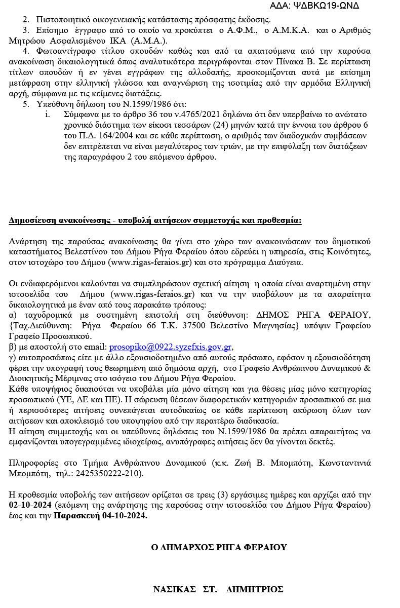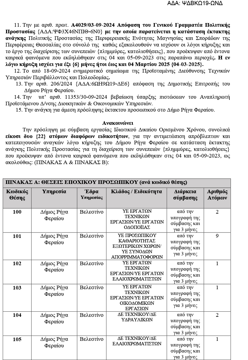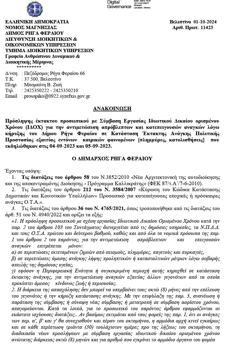 Ανακοίνωση πρόσληψης έκτακτου προσωπικού ΙΔΟΧ για την αντιμετώπιση απρόβλεπτων και κατεπειγουσών αναγκών λόγω κήρυξης του Δήμου Ρήγα Φεραίου σε Κατάσταση Έκτακτης Ανάγκης 1 October 2024 by User 0 Για την ΑΙΤΗΣΗ – ΥΠΕΥΘΥΝΗ ΔΗΛΩΣΗ click εδώ About User