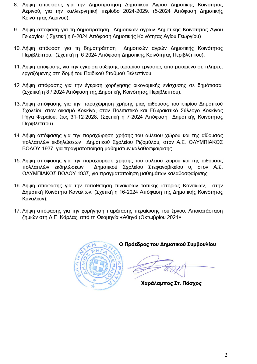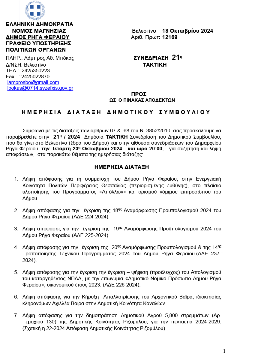 Πρόσκληση για την 21η Τακτική Συνεδρίαση του Δημοτικού Συμβουλίου 18 October 2024 by User 0 About User