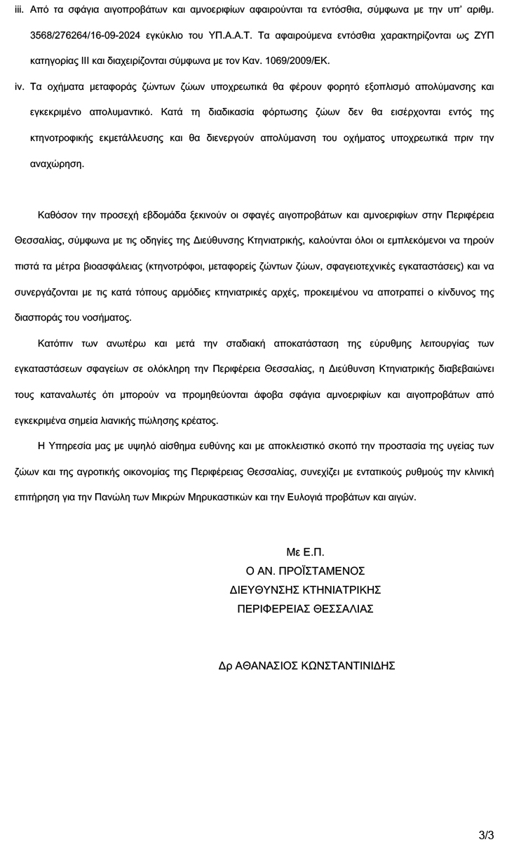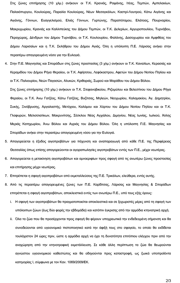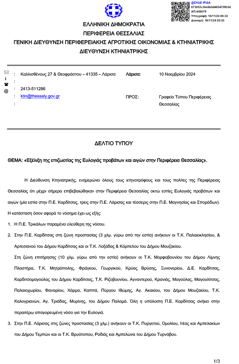 Δ.Τ. Εξέλιξη της επιζωοτίας της Ευλογιάς προβάτων και αιγών στην Περιφέρεια Θεσσαλίας 13 November 2024 by User 0 About User