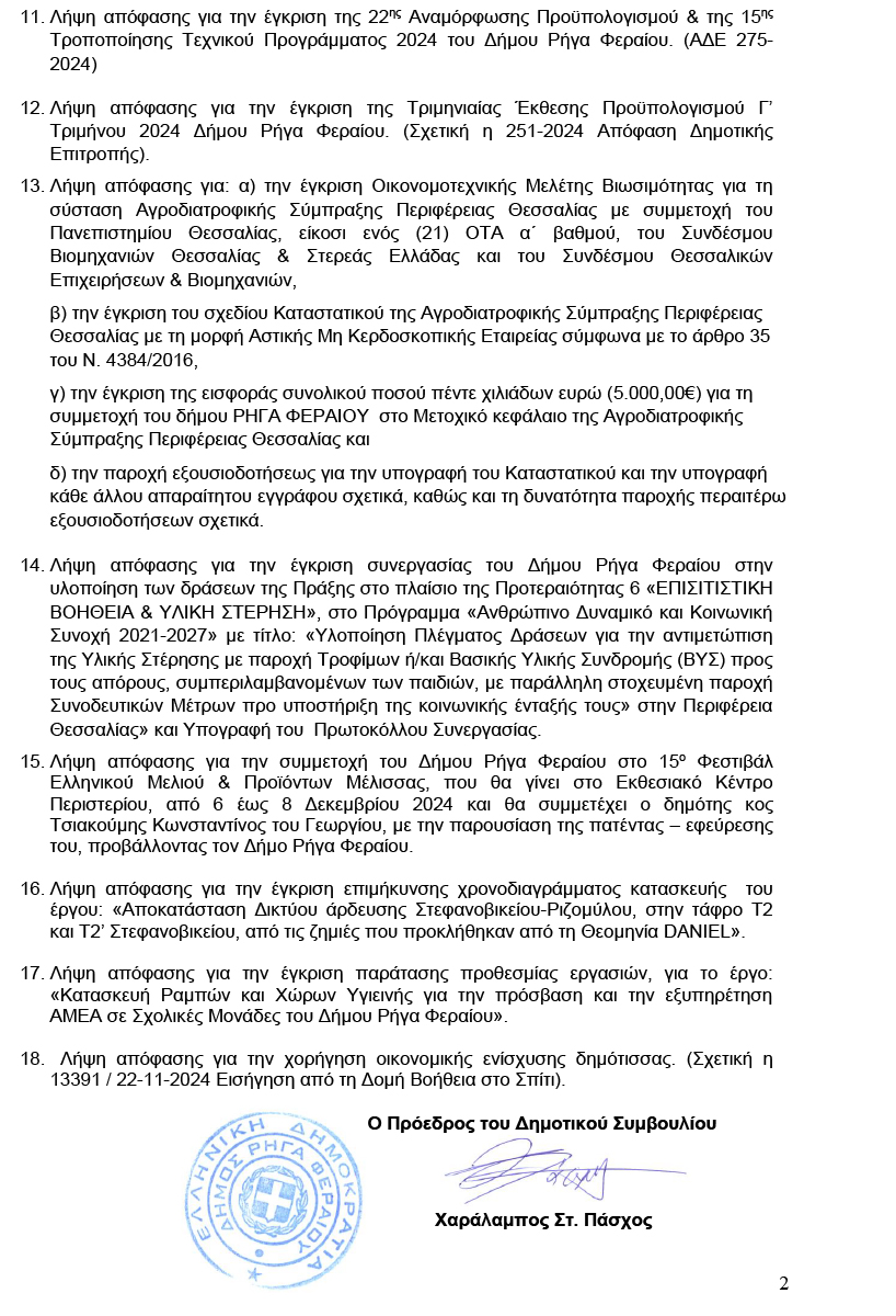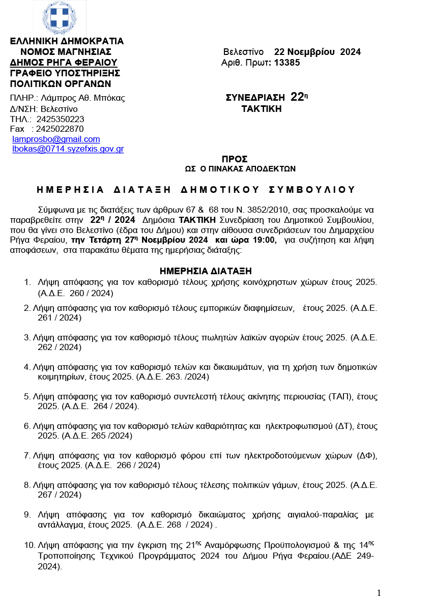 ΠΡΟΣΚΛΗΣΗ ΓΙΑ ΔΗΜΟΣΙΑ ΤΑΚΤΙΚΗ ΣΥΝΕΔΡΙΑΣΗ ΤΟΥ ΔΗΜΟΤΙΚΟΥ ΣΥΜΒΟΥΛΙΟΥ 22-11-2024 22 November 2024 by User 0 About User