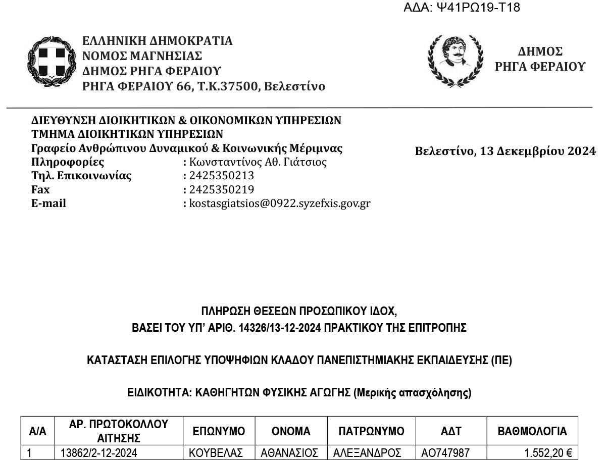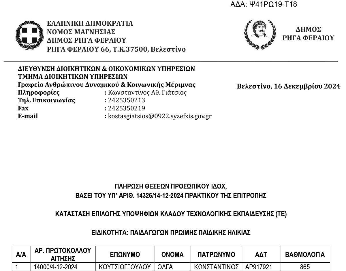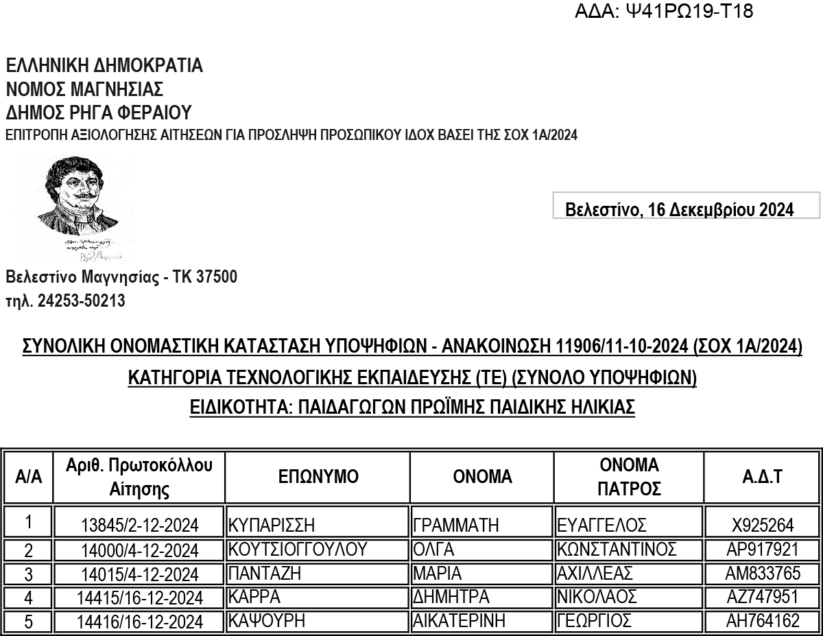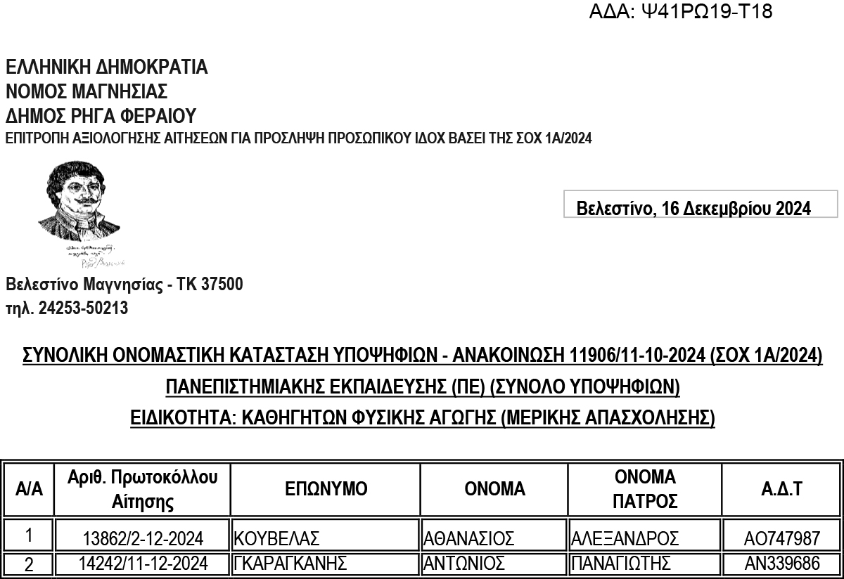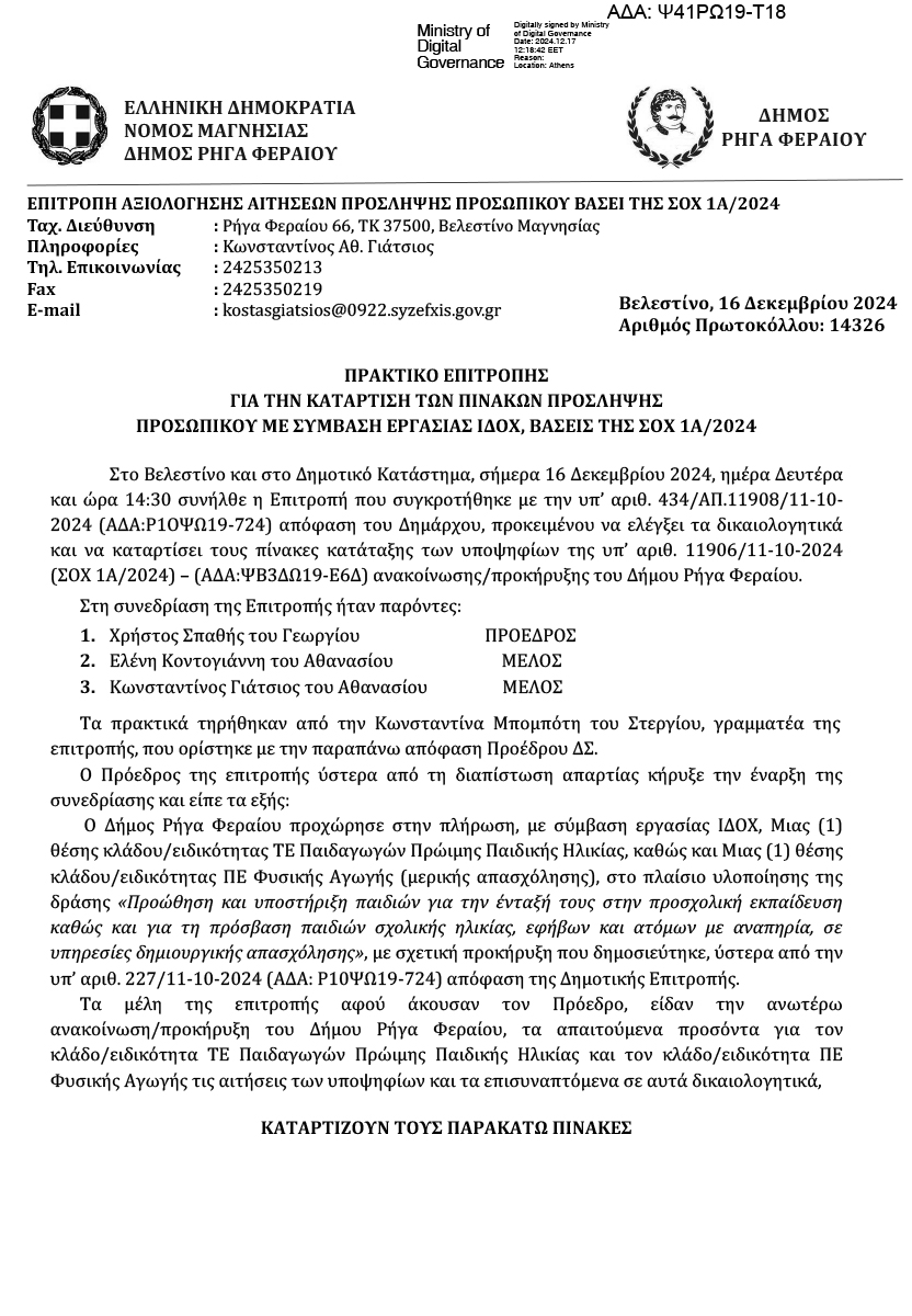 ΠΡΑΚΤΙΚΟ ΕΠΙΤΡΟΠΗΣ ΓΙΑ ΤΗΝ ΚΑΤΑΡΤΙΣΗ ΠΙΝΑΚΩΝ ΠΡΟΣΛΗΨΗΣ (ΟΡΘΗ ΕΠΑΝΑΛΗΨΗ) (ΣΟΧ 1Α-2024) 17 December 2024 by User 0 ΠΡΑΚΤΙΚΟ ΕΠΙΤΡΟΠΗΣ ΓΙΑ ΤΗΝ ΚΑΤΑΡΤΙΣΗ ΠΙΝΑΚΩΝ (ΟΡΘΗ ΕΠΑΝΑΛΗΨΗ) (ΣΟΧ 1Α-2024) About User