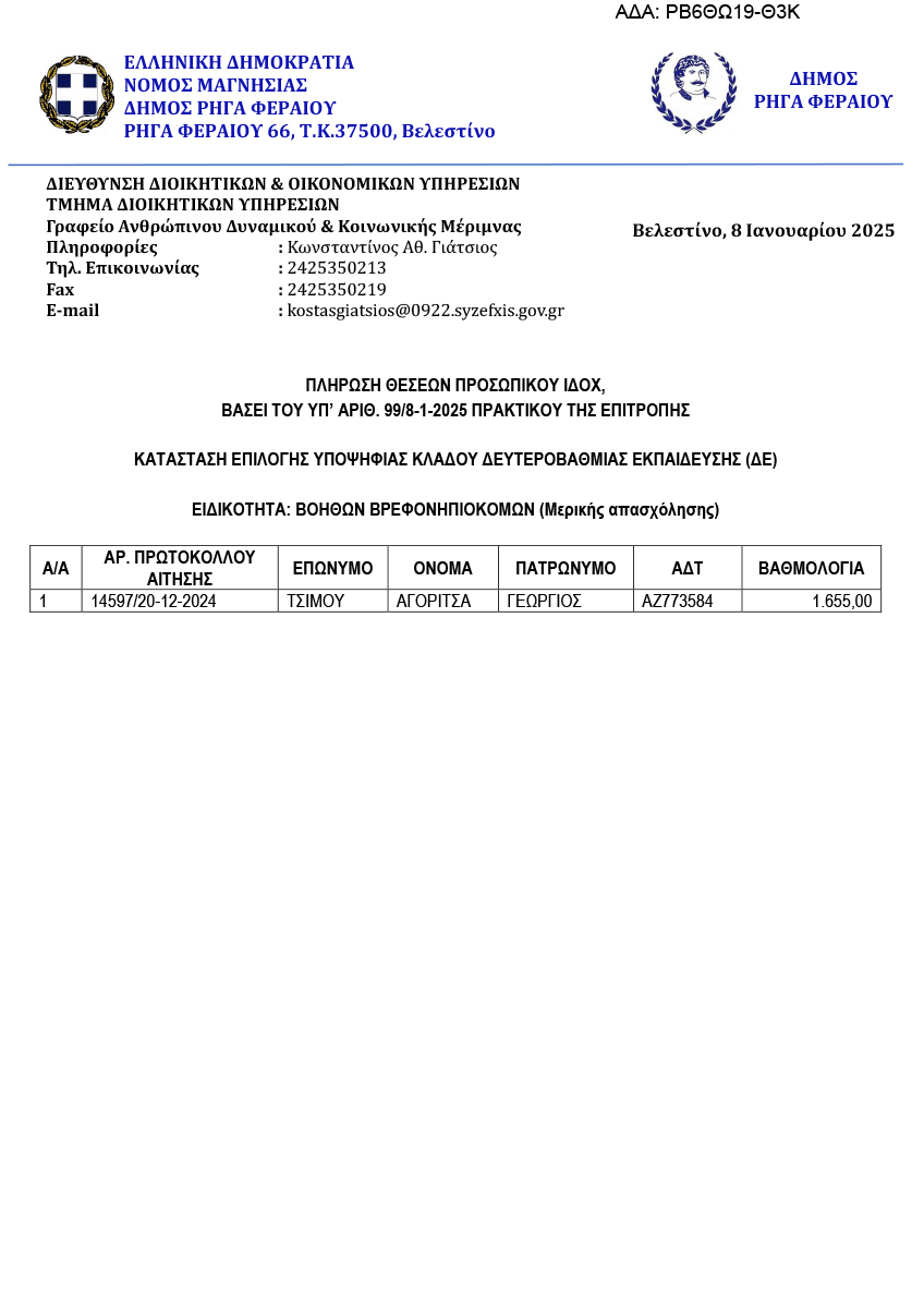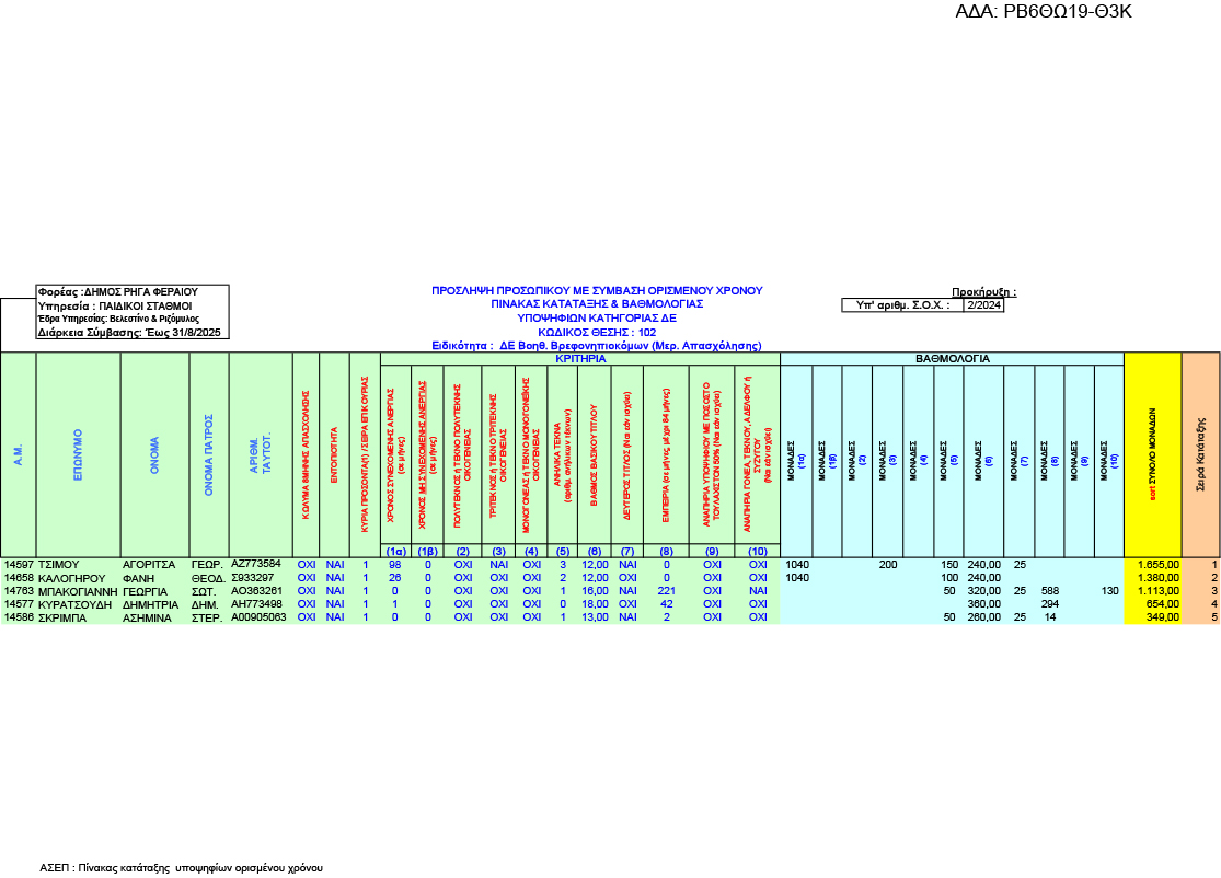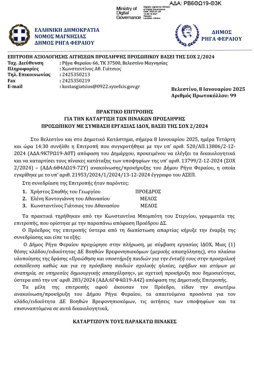 ΠΡΑΚΤΙΚΟ ΕΠΙΤΡΟΠΗΣ ΓΙΑ ΤΗΝ ΚΑΤΑΡΤΙΣΗ ΠΙΝΑΚΩΝ (ΣΟΧ 2-2024)