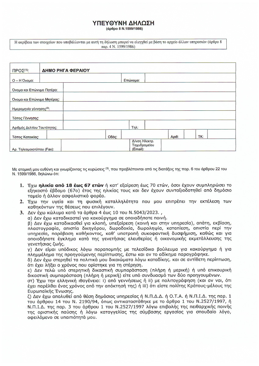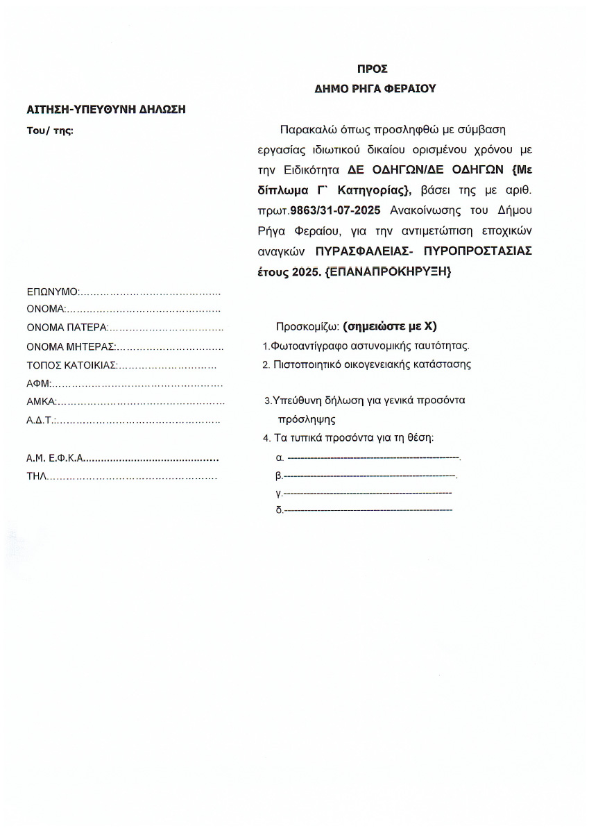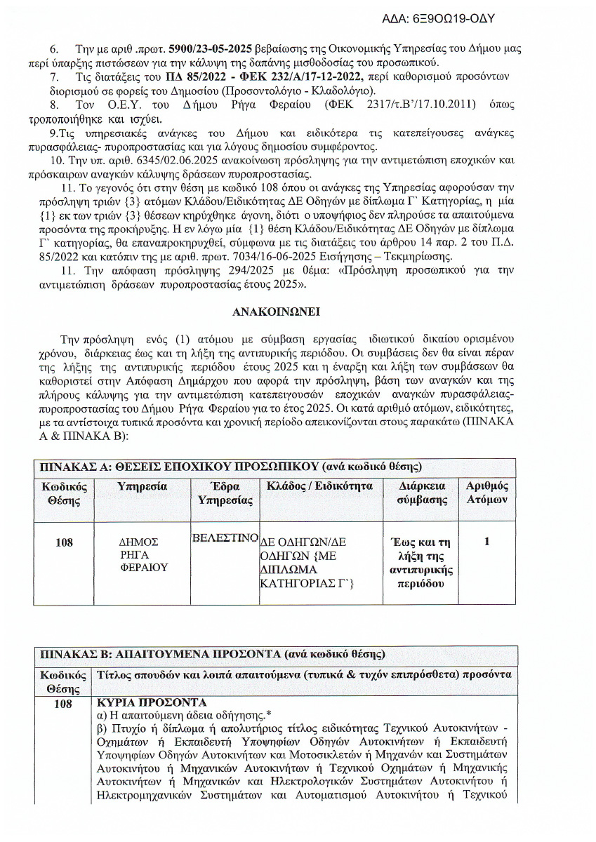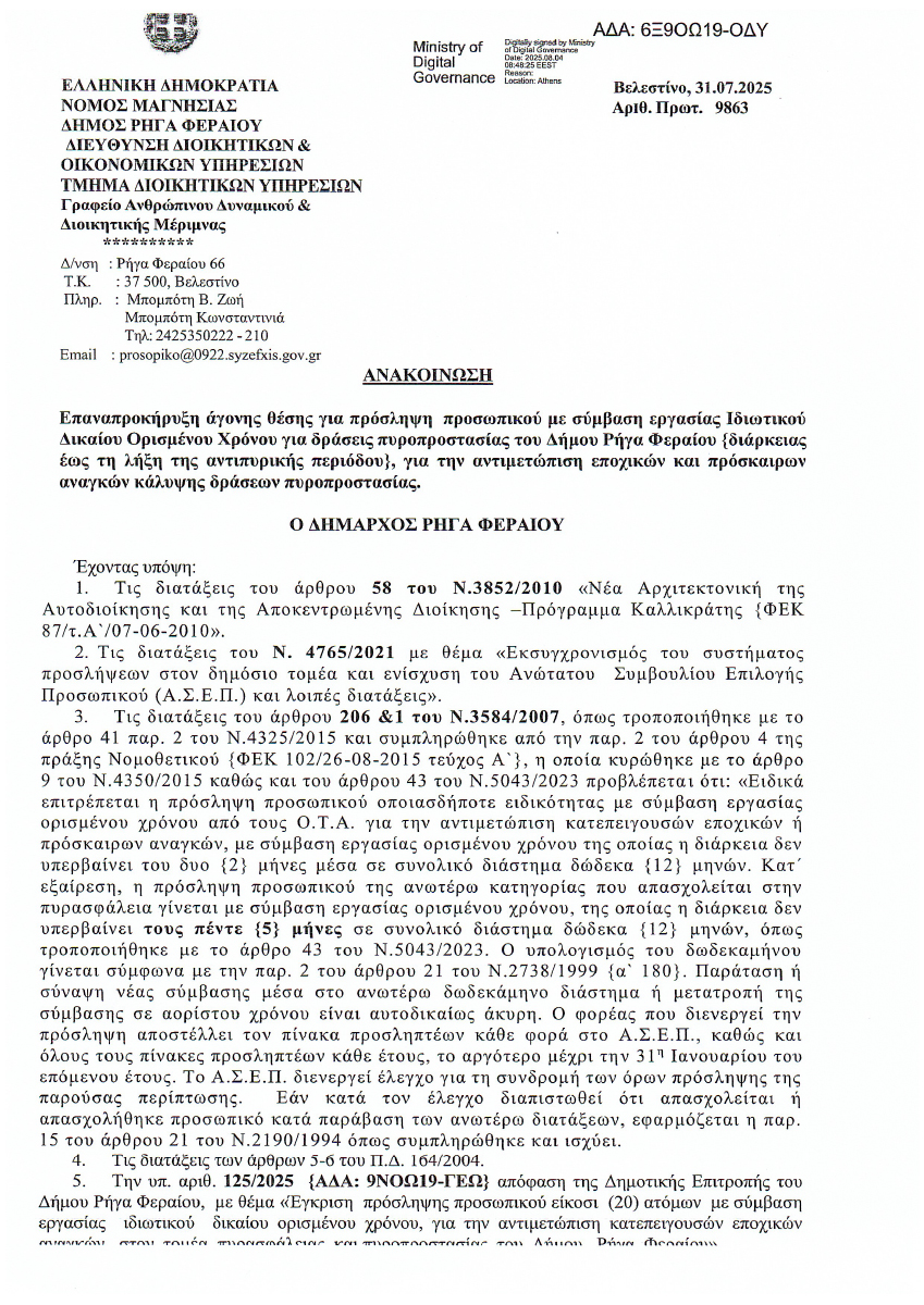 Επαναπροκήρυξη άγονης θέσης για πρόσληψη προσωπικού για δράσεις πυροπροστασίας