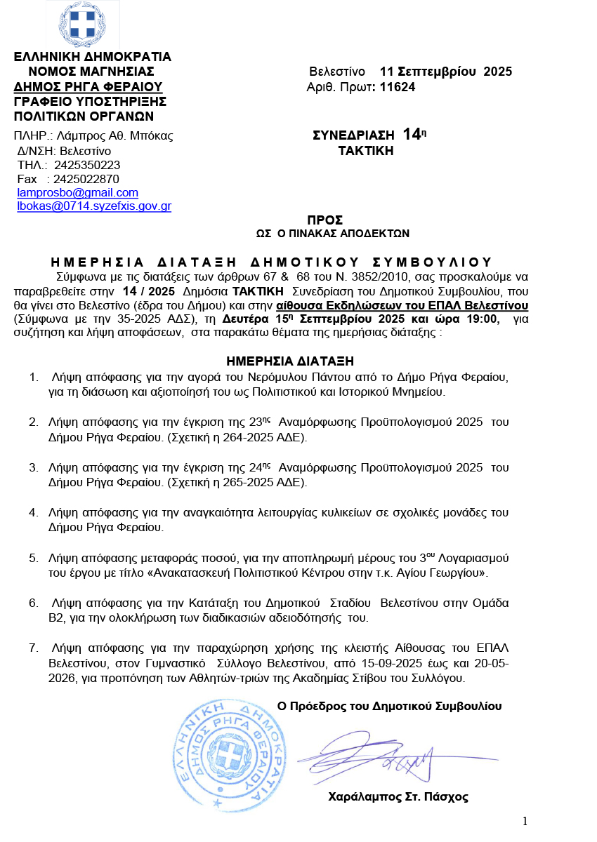 ΠΡΟΣΚΛΗΣΗ ΔΗΜΟΤΙΚΟΥ ΣΥΜΒΟΥΛΙΟΥ ΓΙΑ ΤΗΝ 14-2025 ΤΑΚΤΙΚΗ ΣΥΝΕΔΡΙΑΣΗ 11 September 2025 by User 0 About User