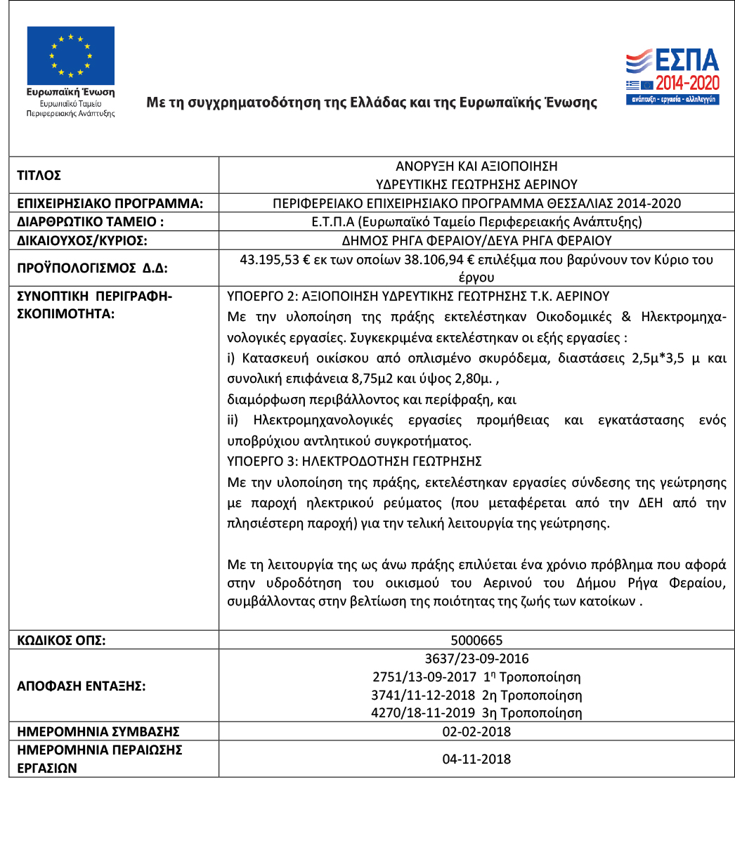 ΑΝΟΡΥΞΗ ΚΑΙ ΑΞΙΟΠΟΙΗΣΗ ΥΔΡΕΥΤΙΚΗΣ ΓΕΩΤΡΗΣΗΣ ΑΕΡΙΝΟΥ