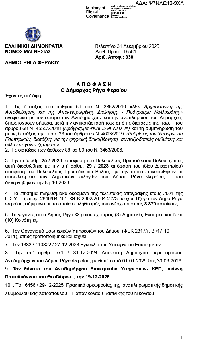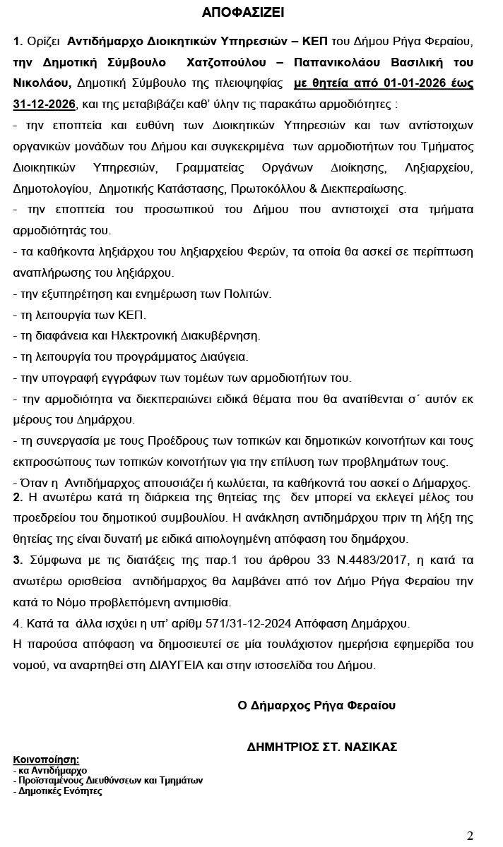 AΠΟΦΑΣΗ ΔΗΜΑΡΧΟΥ ΓΙΑ ΟΡΙΣΜΟ ΑΝΤΙΔΗΜΑΡΧΟΥ ΧΑΤΖΟΠΟΥΛΟΥ ΠΑΠΑΝΙΚΟΛΑΟΥ ΒΑΣΙΛΙΚΗΣ 31 December 2025 by User 0 About User