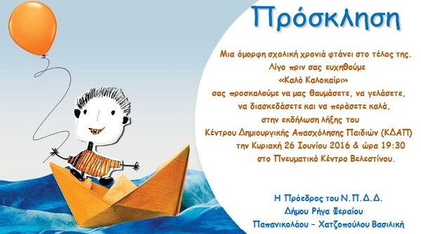 More infoΠρόσκληση εκδήλωσης του Κέντρου Δημιουργικής Απασχόλησης Παιδιών (ΚΔΑΠ)